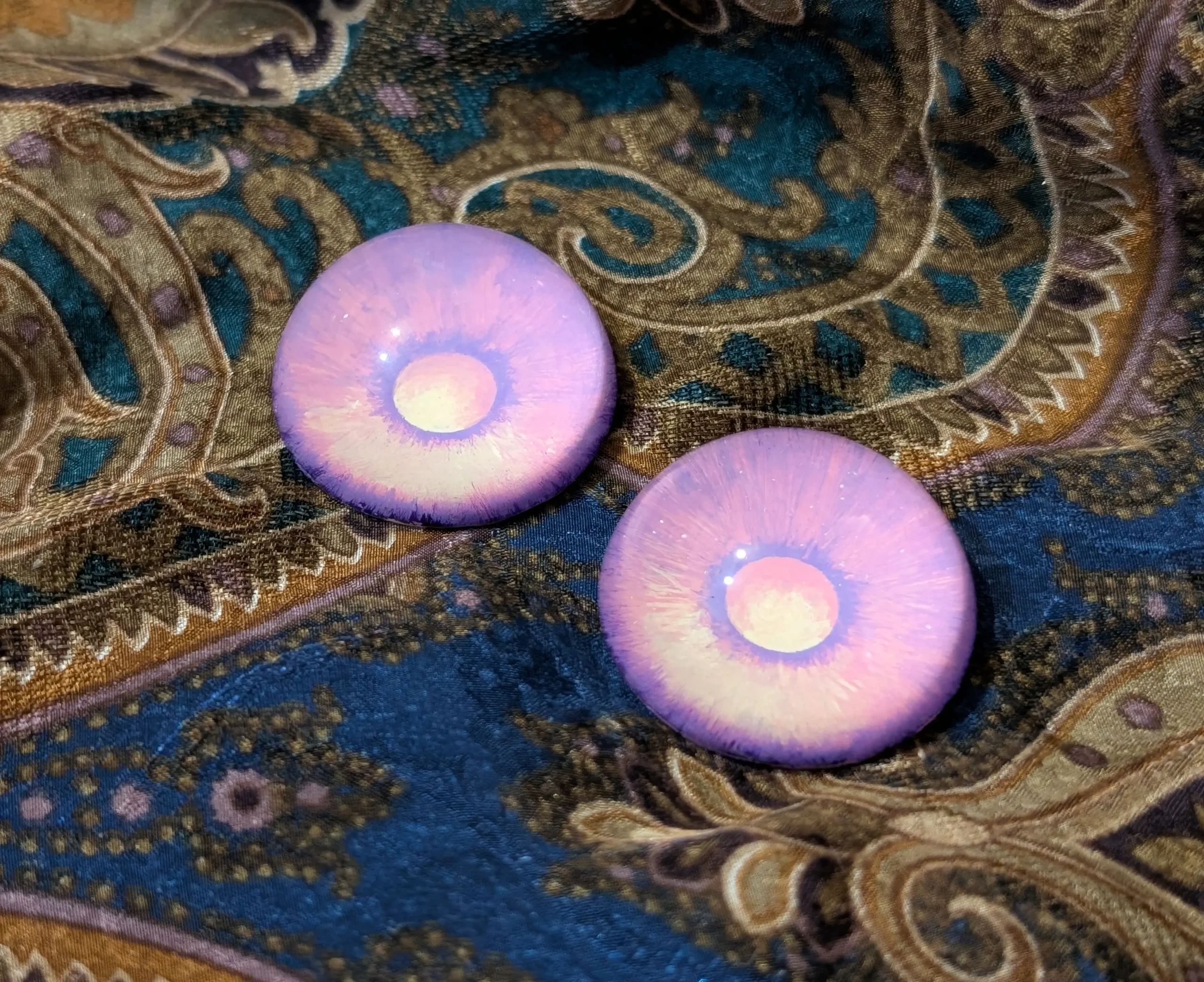 Please note that due to the eyes being hand-painted, we cannot guarantee that the patterns and effects of each eye will be exactly the same. We think it adds charm!
